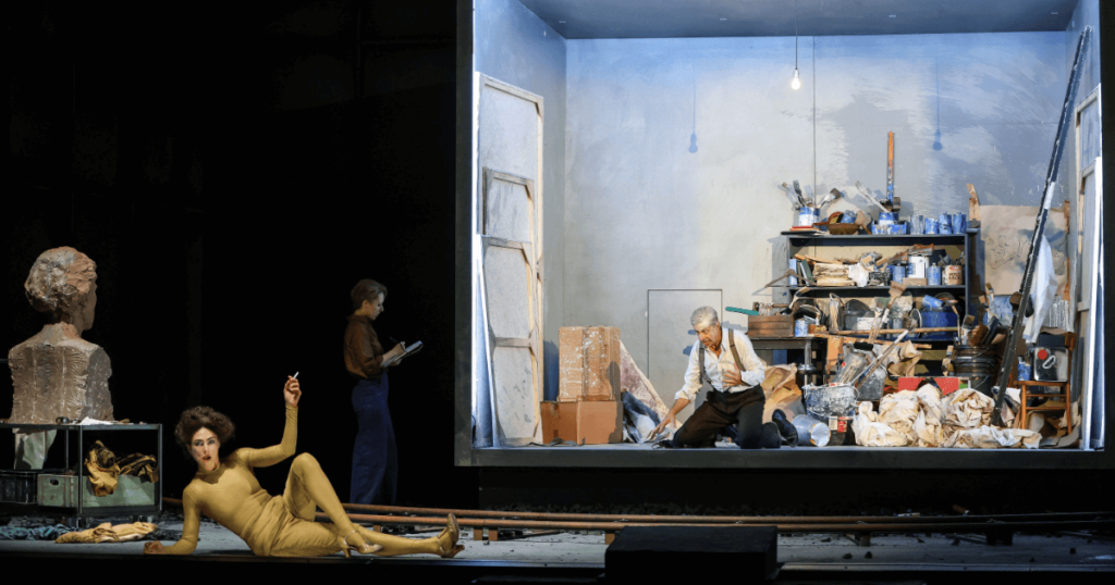 Annette Dasch (Alma Mahler-Gropius-Werfel), Annelie Sophie Müller (Anna, Tochter von Mahler), Martin Winkler (Oskar Kokoschka) © Barbara Pálffy / Volksoper Wien