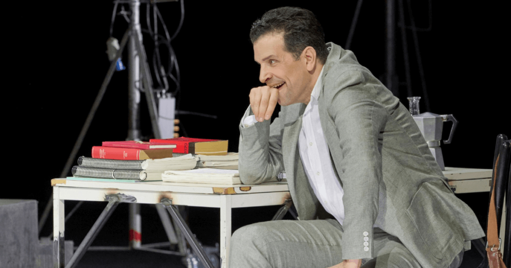 Die feministische Aufarbeitung dieser extrem misogynen Handlung beginnt in großer Form mit dem Bühnenbild. Ein großer Theatersaal, im Hintergrund Überbleibsel eines Requisitenfundus. Ein junges Theaterensemble, das tratschend und mit guter Laune zur Probe kommt, eine messy-aber-cute Regisseur-Situation – we love it! Bis der adrette junge Herr den Mund aufmacht. Verbal ist Così fan Tutte wahrscheinlich eine der frauenverachtendsten Opern überhaupt, aber wie Barrie Kosky trotz unverändertem Libretto inszeniert, ist genial. Denn der Regisseur entpuppt sich in dieser Inszenierung als Don Alfonso, sprich: der Übeltäter in dieser Geschichte. Aber auch nicht ganz, wenn man Koskys Inszenierungsplan folgt.