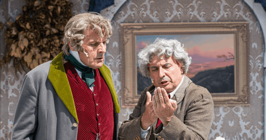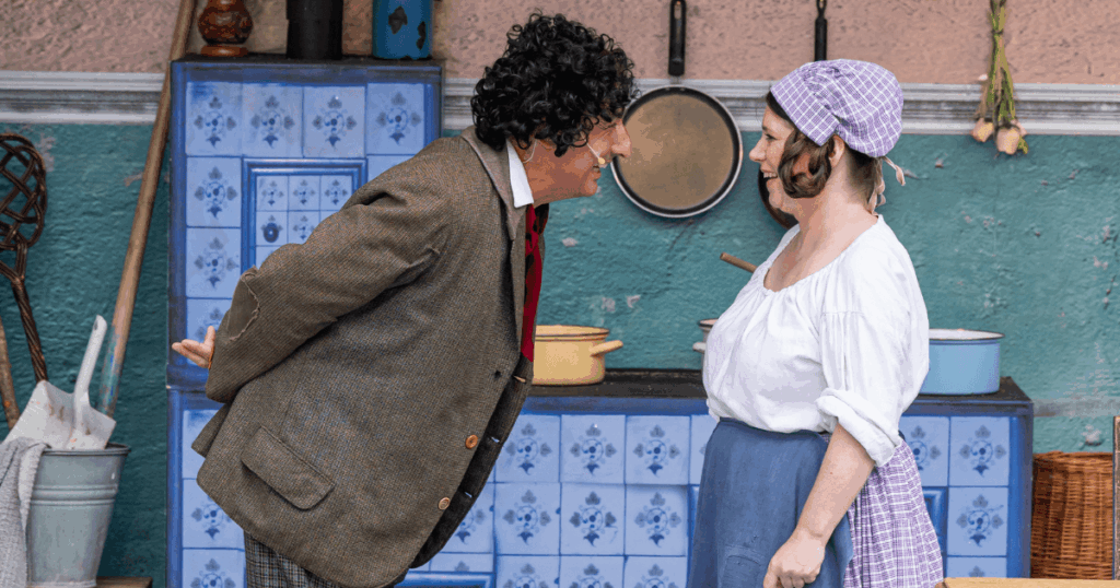 Apropos Äußerlichkeiten: Optisch überzeugt diese Inszenierung nicht nur durch die entsprechenden Kostüme, sondern auch durch die Kulisse. Denn die Häuserfront rund um die gebaute Bühne auf dem Stockerauer Kirchenplatz fügt sich wunderbar in die Kulisse dieser Nestroy-Komödie über Vorurteile, Überheblichkeit, Äußerlichkeiten und Intrigen.