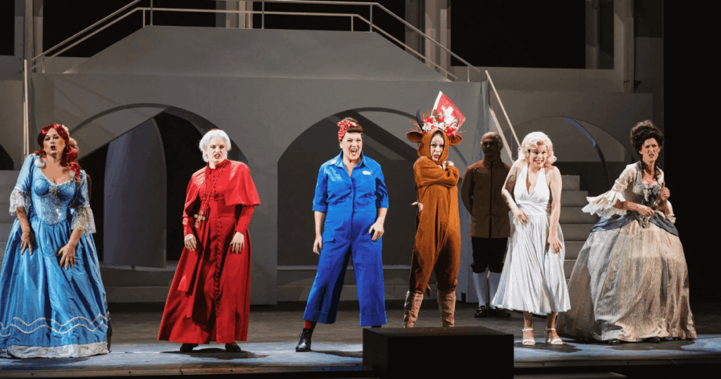 Das Stück ist witzig, frech und zeitgemäß inszeniert: Gerade deswegen könnten auch Opernneulinge an diesem Stück Gefallen finden. Zwischenzeitlich dachte ich immer wieder, dass es ein modernes Theaterstück wäre, bis zu dem Zeitpunkt, als die Arien und Duette gesungen wurden. Statt “altmodischer” Opernstimmung gibt es hier Popkultur, Ironie und starke weibliche Figuren. Ein perfekter Einstieg für alle, die eine Operette mal anders erleben wollen.