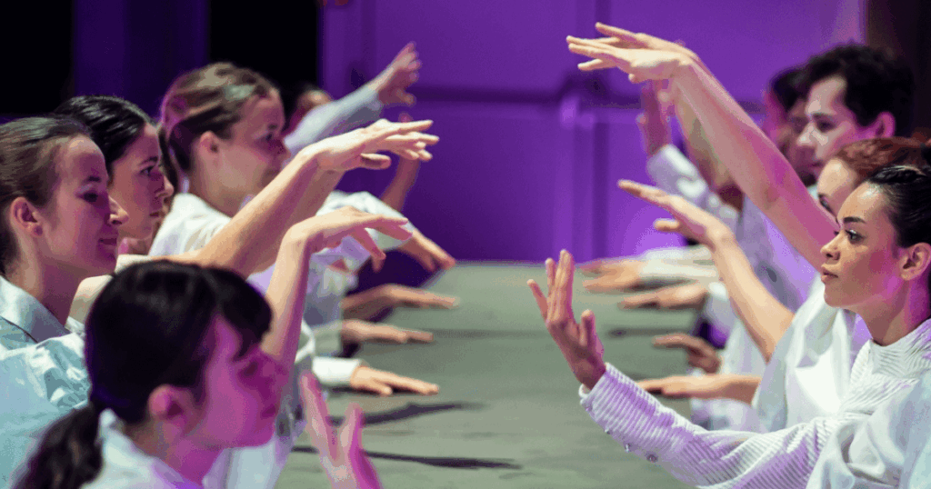 Ich habe die Abteilungsleiterin der Outreach-Abteilung Krysztina Winkel und ihre Kollegin Katharina Augendopler zum Interview getroffen und auch ein paar Stimmen aus dem Ensemble eingeholt. Krysztina und Katharina arbeiten gemeinsam in der Outreach-Abteilung der Wiener Staatsoper und mit ihrem Kollegen Carlos haben sie das Stück “Freier Fall” inszeniert und mit dem Community Ensemble des CityLab entwickelt.