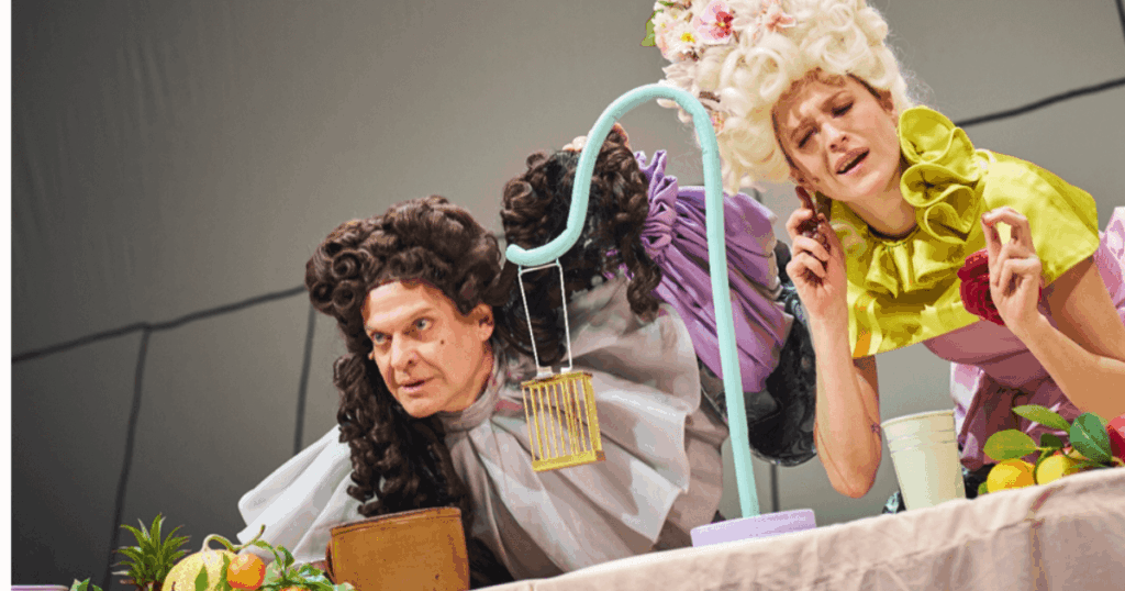 Für die Produktion wurde die komplette Trickkiste des Theaters ausgeräumt: wilde Kostüme, brennende Paläste im Miniaturformat und eine Gesangseinlage aus der Loge im zweiten Rang. Den jungen Besucher*innen wird gezeigt, was so ein Theater alles kann.