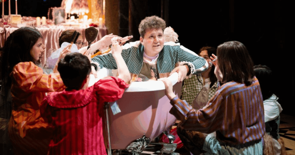 Auf der Bühne ist generell viel los – Schauplätze gibt es überall im Raum: in jeder Ecke, auf jeder Fläche, sogar in einer Badewanne wird performt. Vom Publikum, das entlang der vier Wände im Raum Platz nimmt, sind die Jugendlichen manchmal nur wenige Zentimeter entfernt und ziehen das ganze Register, das menschliche Gefühle hergeben. Dadurch werden die 75 Minuten Spielzeit zu einem sehr intimen Abend.