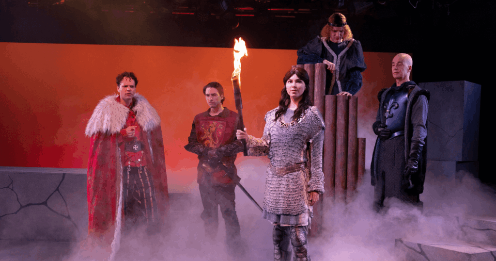Kaum hat einer der vier männlichen Darsteller (Theo Colarusso, Edward Lischka, Bernhard Majcen und Christoph Radakovits) die Bühne betreten, verlässt er sie schon wieder, um sie kurz darauf als völlig andere Figur wieder zu betreten. Mittendrin die einzige Frau im Ensemble und in der Handlung: die junge Jeanne (Clara Lou Kindel), an der sich die alte, sagenumwobene Merlin-Prophezeiung erfüllen soll: Frankreich wird durch eine Frau zerstört und durch eine Jungfrau gerettet werden.