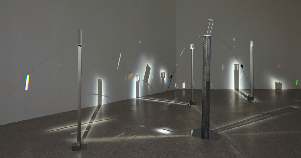 Die Ausstellung im mumok zeigt eine Vielfalt an Medien: von Zeichnungen und Collagen über kinetische Skulpturen bis hin zu Installationen. Besonders spannend: Viele der motorisierten Werke sind so programmiert, dass sie zu unterschiedlichen Zeiten aktiv werden. Dadurch entsteht ein einzigartiges, individuelles Ausstellungs-Erlebnis, das dazu einlädt, mehrfach in die dynamische Welt von Liliane Lijn einzutauchen.