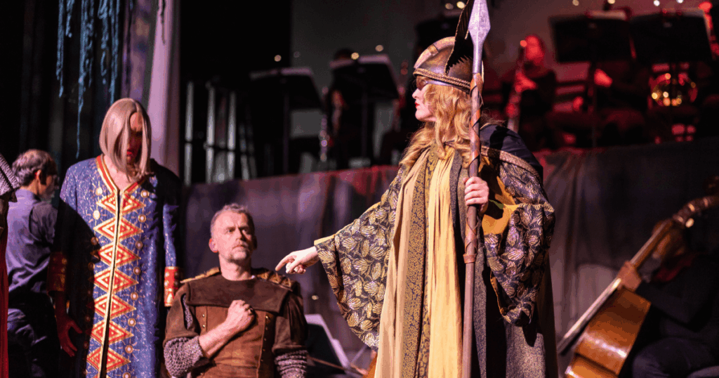 Generell war der gesamte Cast top und hat uns als Zuschauer*innen in ihre Welt hineingezogen. Christopher Wurmdobler als zerbrechliche Erda mit Luftballon (Seherin & Mutter der Normen), Anne Wieben als überzeugender, emotionaler Wotan (Herrscher der Welt, quasi Chef von Valhall) und Alkis Vlassakakis als der geldgierige Alberich Nesterval bildeten ein starkes Trio der Leadership-Ebene. Martin Walkner (Brünhild, Tochter von Erda) und Willy Mutzenpachner (Sigfrid, Enkel von Wotan) sind das perfekte nervige Liebespaar, denen alles egal ist, solange sie zusammen sein können.