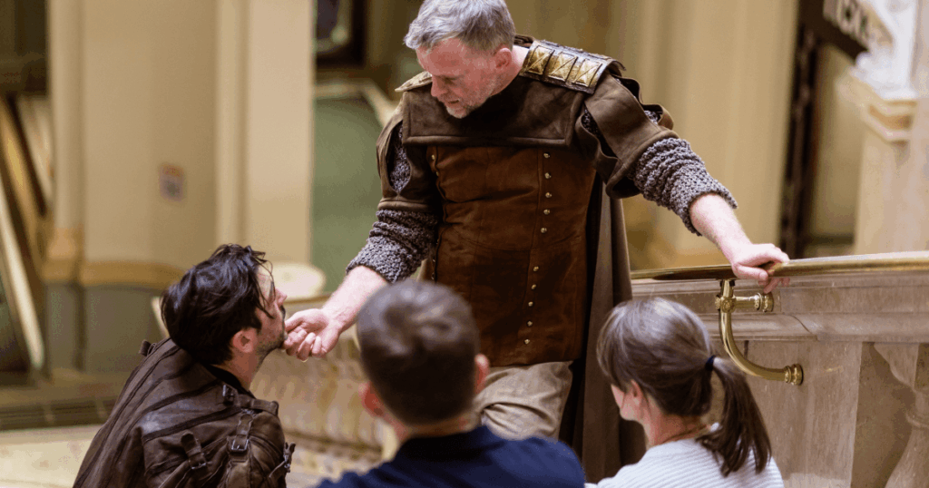 Mein erster Gedanke war “Na bitte nicht noch ein Stück über das Drama des Klimawandels”. Gleichzeitig kann ich mich eigentlich nicht erinnern, wann ich das letzte Mal ein Stück gesehen habe, in dem das ein Hauptthema war. Von Anfang an hieß es also: Darauf einlassen – egal, was passiert. Dass hier ein Wandertheater mit viel Publikums-Interaktion auf uns zukommt, war mir klar. Denn ich war in meiner Studienzeit schon einmal bei einer Performance von Nesterval (und begeistert). Für alle anderen sei hier gesagt: Lest euch die Info-Mail wirklich gut durch, damit ihr euch auf das Chaos des immersiven Theaters einstellen könnt.