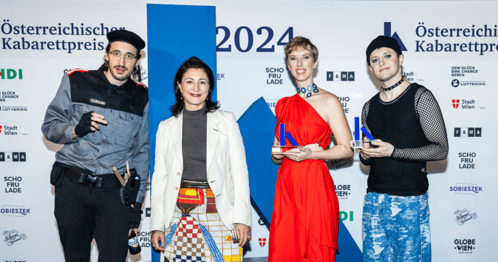 Ebenso Tradition hat seit einigen Jahren, dass der Förderpreis weiblich ist. Man könnte das als positives Zeichen nehmen, dass immer mehr Frauen nachdrängen. Dass sie es aber im Jahr 2024 immer noch nicht leicht haben, bewies der Kurzauftritt der heurigen Preisträgerin in dieser Kategorie: Christina Kiesler befasst sich in ihrem prämierten Programm „Nachspielzeit“ mit genau diesem Thema der Gläsernen Decke. Und in ihrem Solo, aus dem sie bei der Verleihungsgala einen Ausschnitt präsentierte, bringt es die homosexuelle Fußballerin auf den Punkt: „Ich würde mich ja gerne hochschlafen – aber bei welchen Frauen?“ Sie hat, wenn sie sich nach oben streckt, „nur lauter Beidln im G’sicht“.