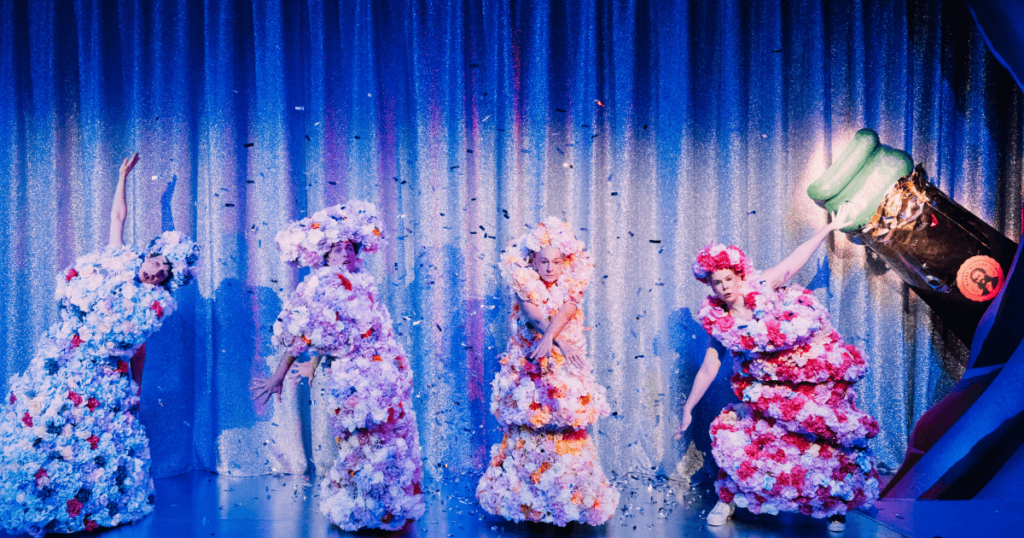 Ein unfassbar witziger und politisch pointierter Abend, der wahnsinnig schnell vorbeigeht. Ein Witz folgt auf den anderen, man hat fast keine Zeit sich zu fragen: Ist das Bühnenbild nicht vielleicht doch eine Rose und kein Arschloch? Wobei diese Schleimspur sich doch mehr auf Letzteres bezieht als auf die Blume. Und Blumen sind an dem Abend bereits ausreichend vertreten.
