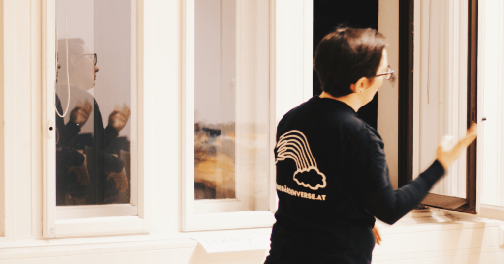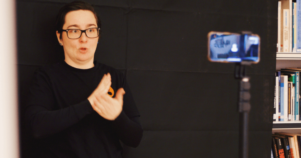 Aber wer wie Nicci Barrieren im Alltag gewohnt ist, wird von so etwas nicht aus dem Konzept gebracht. Dann gibt’s die Stand-up-Comedy eben online. Und so erreichte die kultur*knistern-Redaktion die Einladung vom Verein Gebärdenverse zu einem dreiviertelstündigen Vorgeschmack auf das, was im Mai hoffentlich tatsächlich auf einer Bühne in Wien stattfinden soll.