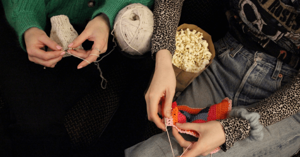 Die Idee hinter dem Event stammt von einer Gruppe begeisterter Votivkino-Mitarbeiter*innen, die ihre Liebe zu Handarbeiten aller Art teilen. Neben Stricken sind hier also auch Häkeln, Basteln, Filzen und alles, was im Kinosaal machbar ist, willkommen.